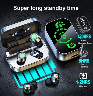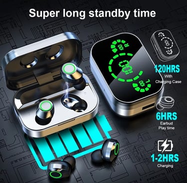 Best-selling wireless earbuds with LED battery display & ultra-long battery life. Featuring an LED digital display charging case, touch controls, and fast charging technology, these earbuds are perfect for music, calls, gaming, and daily use.