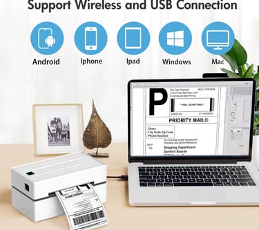Print shipping labels quickly and effortlessly with this inkless thermal label printer. Designed for home offices and online sellers, it offers high-speed printing, zero ink cost, and wireless convenience.