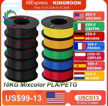 Upgrade your 3D printing with KINGROON premium PLA/PETG filament, made from eco-friendly, biodegradable PLA. Designed for smooth extrusion, strong prints, and vibrant colors, perfect for beginners and professionals.