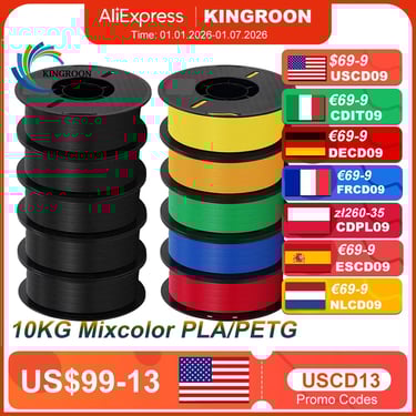 KINGROON PLA / PETG 3D Printer Filament – 10KG Mix Colors